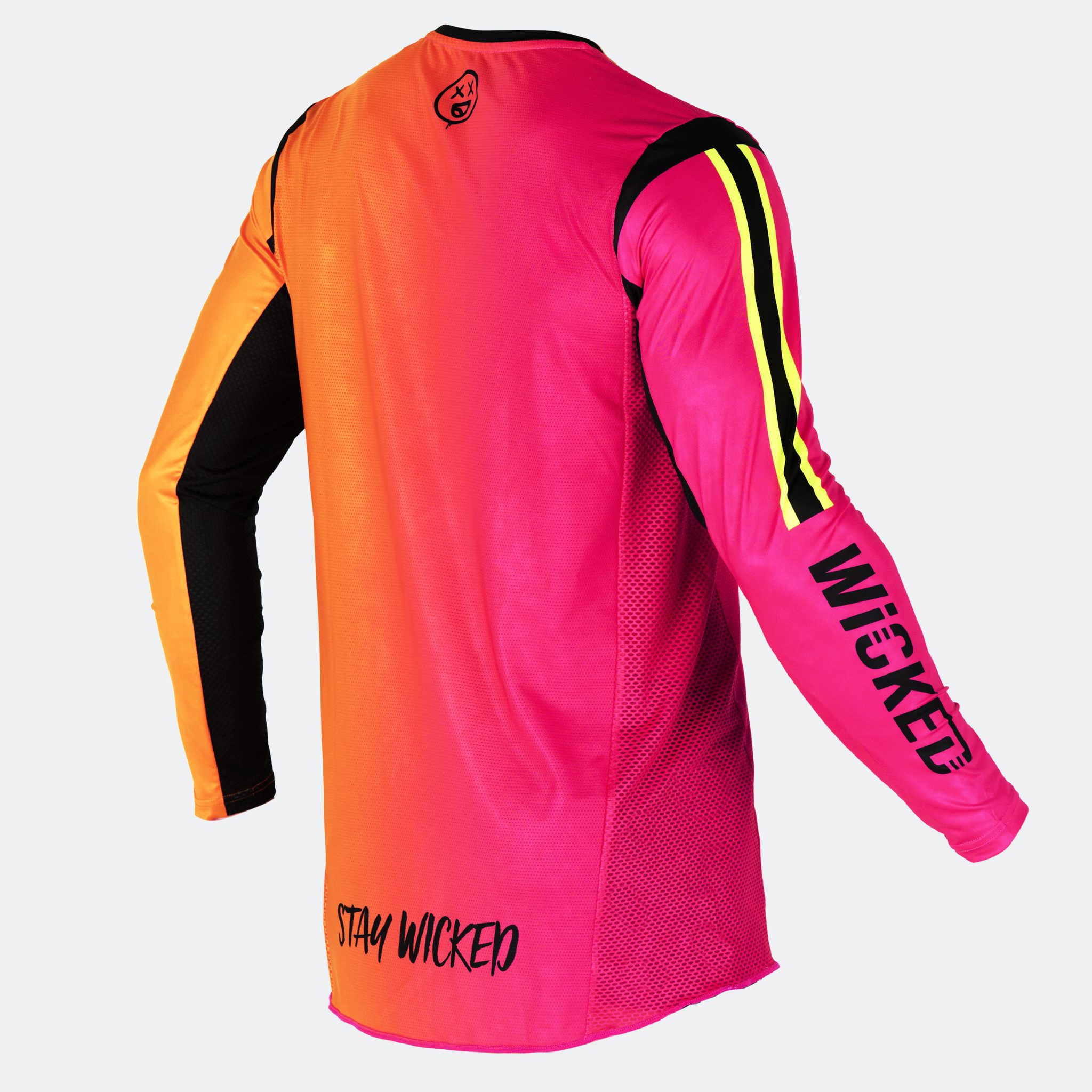 • Super modern colorful print • Moisture wicking polyester in main body fabric provides a soft, lightweight fit while moving sweat away from the body to keep you dry • Drop tail rear design keeps the MX jersey tucked in pants • Sublimated graphics for long-lasting bright colors • 2 color combinations