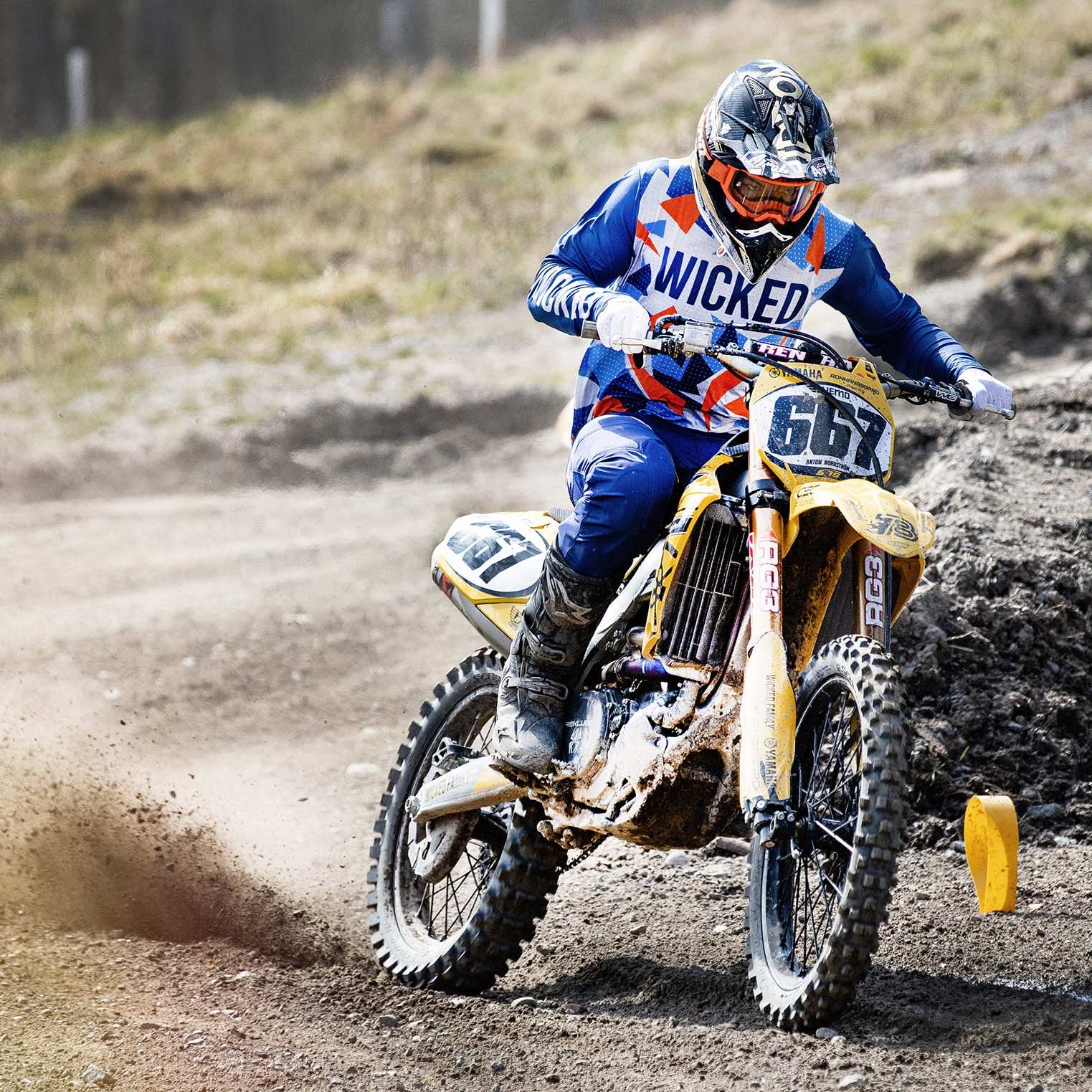 Since the material has lots of stretch in it, the choice is yours if you want a tighter or looser fit. This Motocross Jersey has a contoured fit for less wind flap without being too tajt. The perfect fit for you to cut through the air without any limitations in your wicked Dirt Bike Racing Gear.